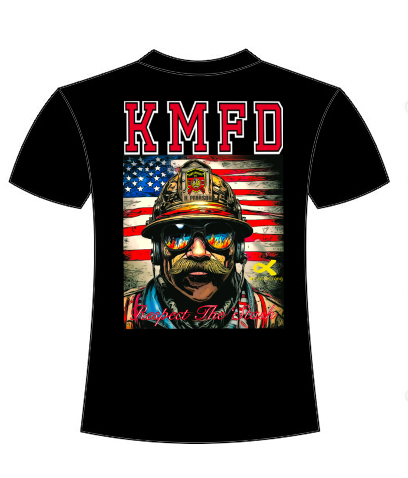 Custom designed and printed by Norris Studios, this shirt is available in Black and features the KM Fire logo on front left chest and a full back print as pictured below.